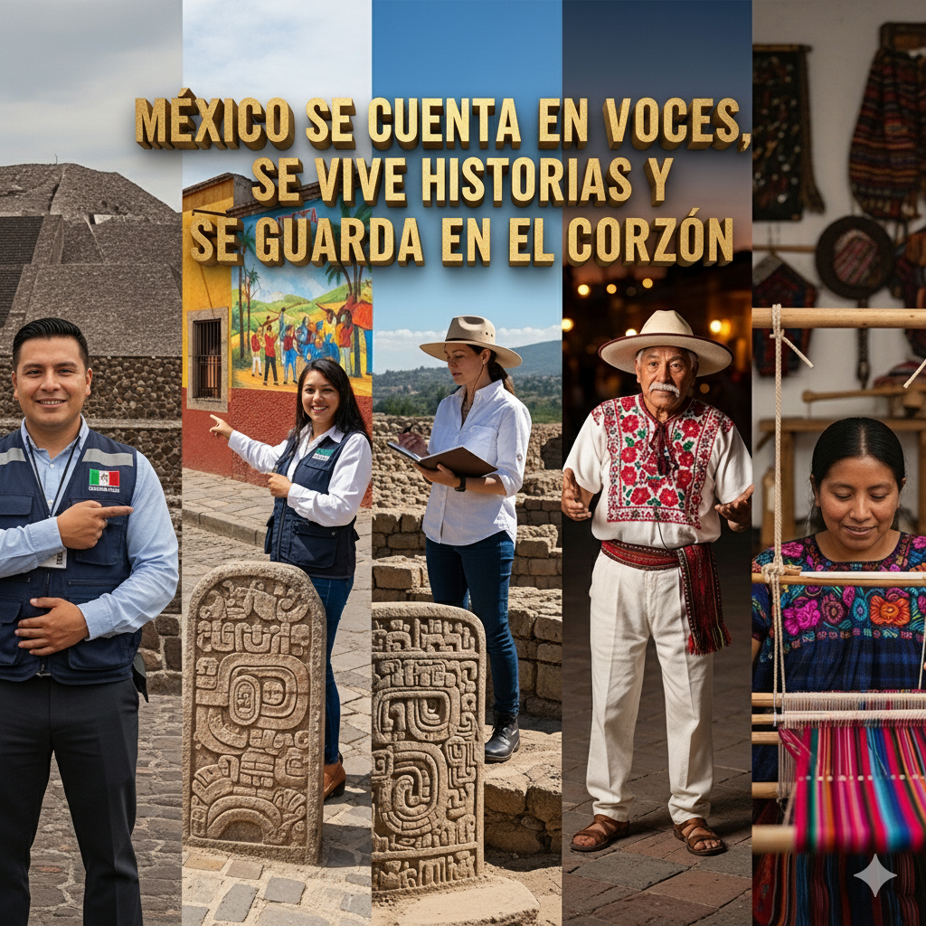 “Ellos son la voz viva de México: guías certificados, guías locales, especialistas, cronistas y portadores de tradición que transforman cada recorrido en una experiencia inolvidable. Con su pasión y conocimiento, convierten tu viaje en una historia que se queda en el corazón.”